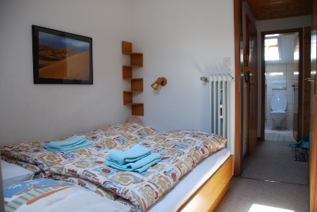 Im Schlafzimmer befindet sich ein Doppelbett, ein Kleiderschrank,und ein Radiowecker mit CD Player.