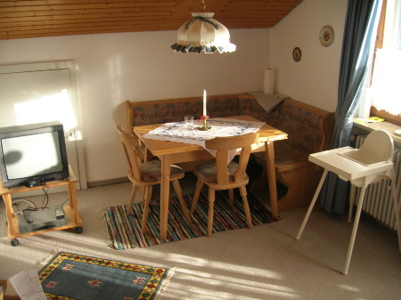 In der WHG befindet sich ein TV Gerät mit SAT-Anlage; Kinderhochstuhl und eine gemütliche Sitzecke für bis zu 6 Personen