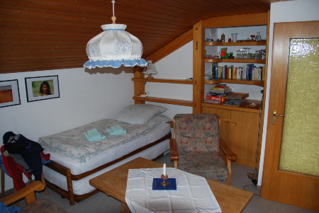 Wohnungsbeschreibung: Die Wohnung besteht aus einem kl. Schlafzimmer mit einem Doppelbett. Im Wohnraum befinden sich ebenfalls 2 Betten, welche man Einzeln oder als Doppelbett stellen kann. Bei nicht Gebrauch kann man eines schnell und einfach unter das andere schieben. Weiter gehört eine gemütliche Sitz/Essecke mit Tisch zum Raum, ebenso wie ein Fernseher mit SAT-Anlage und ein portabler CD Player zur Wohnung. Der Balkon bietet einen wunderschönen Blick auf das Rubihorn.